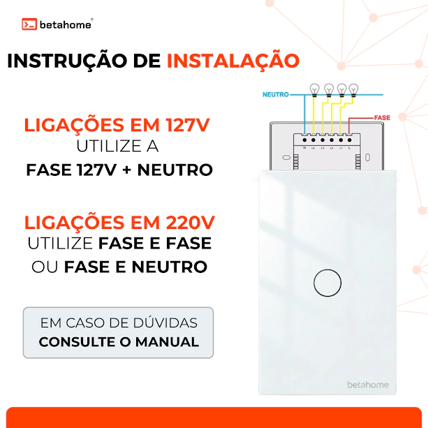 O Interruptor Inteligente WiFi 3 Botões Betahome (LITE-3-W) traz praticidade e modernidade para sua casa ou escritório. Com ele, você controla a iluminação de forma tradicional pelo painel touch ou remotamente pelo aplicativo no celular, de qualquer lugar.